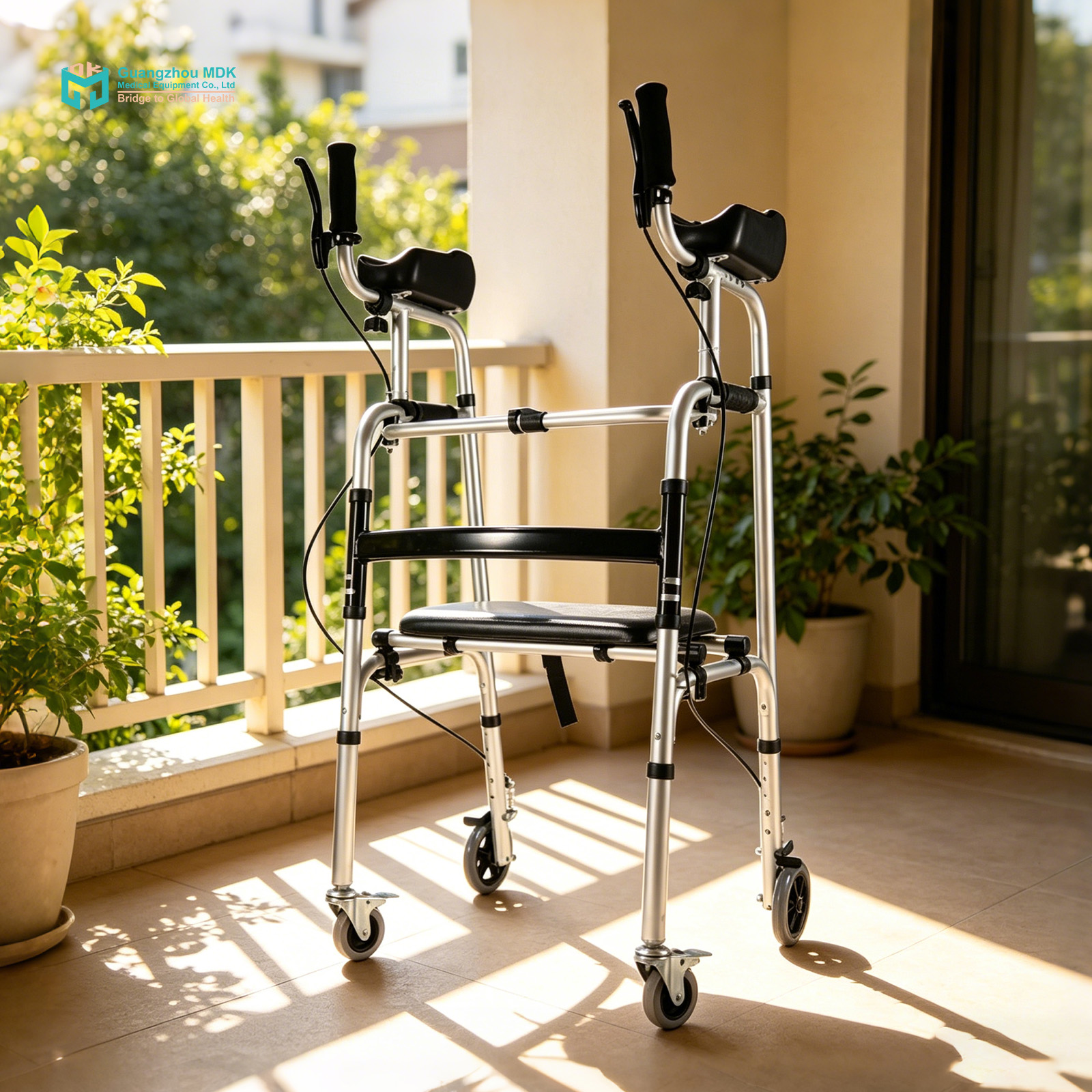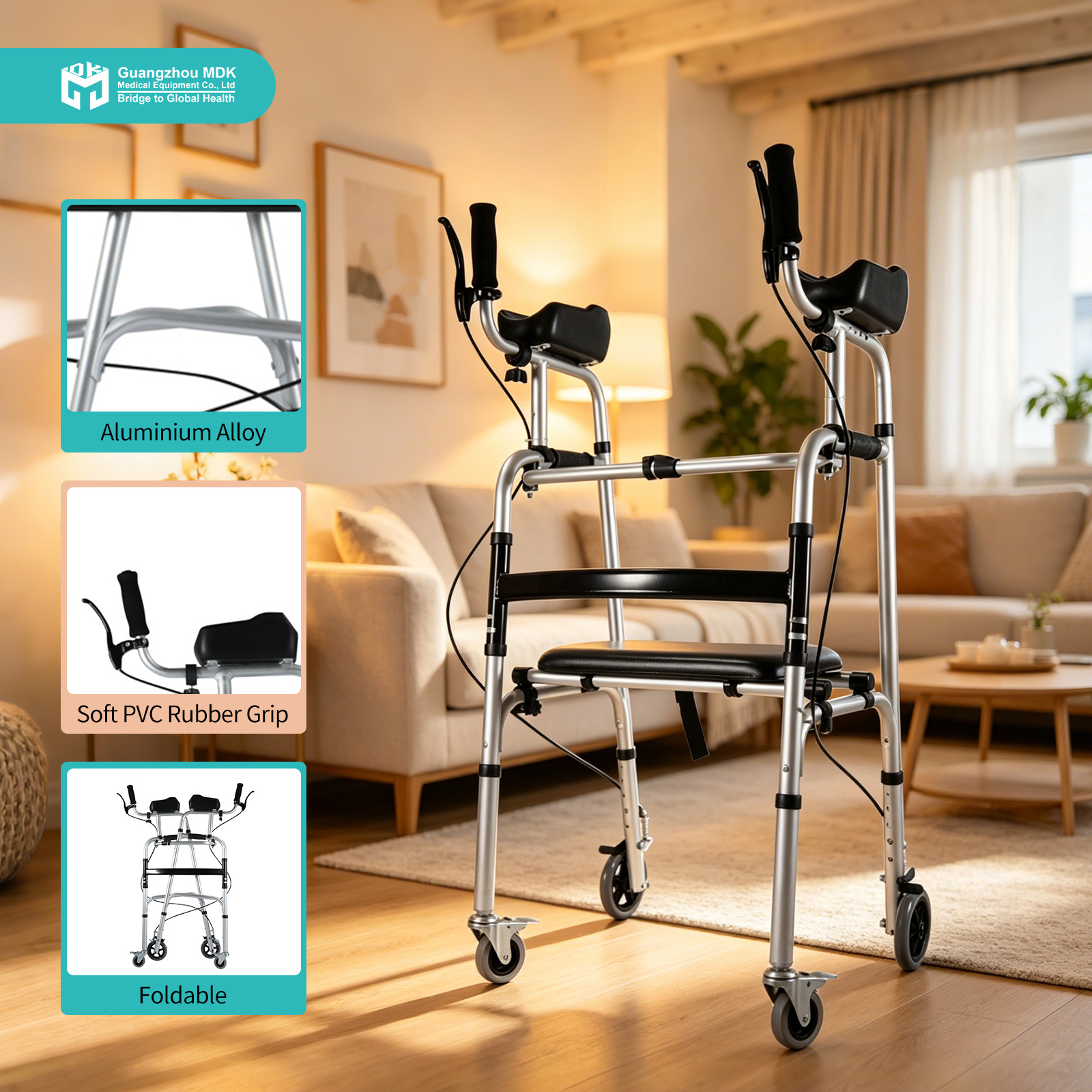 Specifically designed to help patients maintain proper body balance, this walker features U-shaped PU forearm supports. This ergonomic design is highly beneficial for users with weak hand strength or those recovering from surgery, as it distributes body weight across the forearms rather than the wrists. The PU supports are fully detachable, allowing the unit to easily convert into a traditional frame walker when upper body support is no longer required.